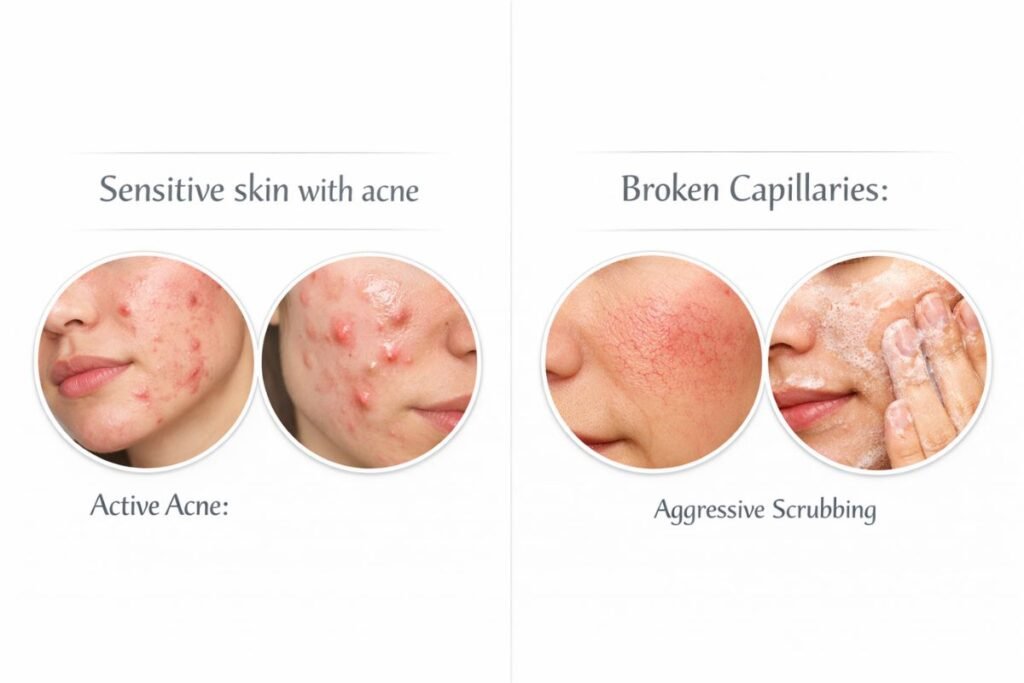 - Active Acne: Sensitive skin with acne may need specific care with acne-targeting ingredients like benzoyl peroxide or salicylic acid. However, these should be used cautiously, as they can be harsh.