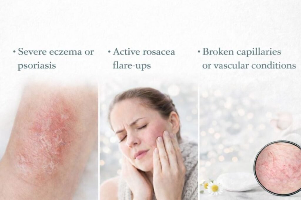 - Broken capillaries or vascular conditions: Certain oils and ingredients may irritate the skin, causing flare-ups for individuals with broken capillaries or other vascular conditions.