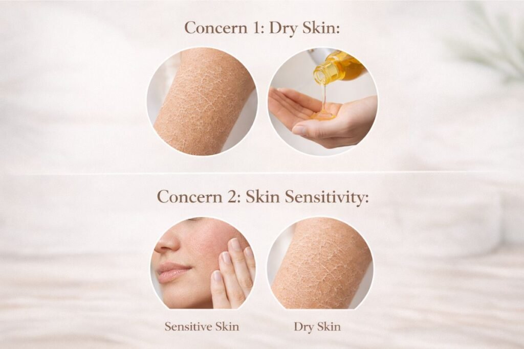 - Dry Skin: Hydrates and replenishes moisture without stripping natural oils.
