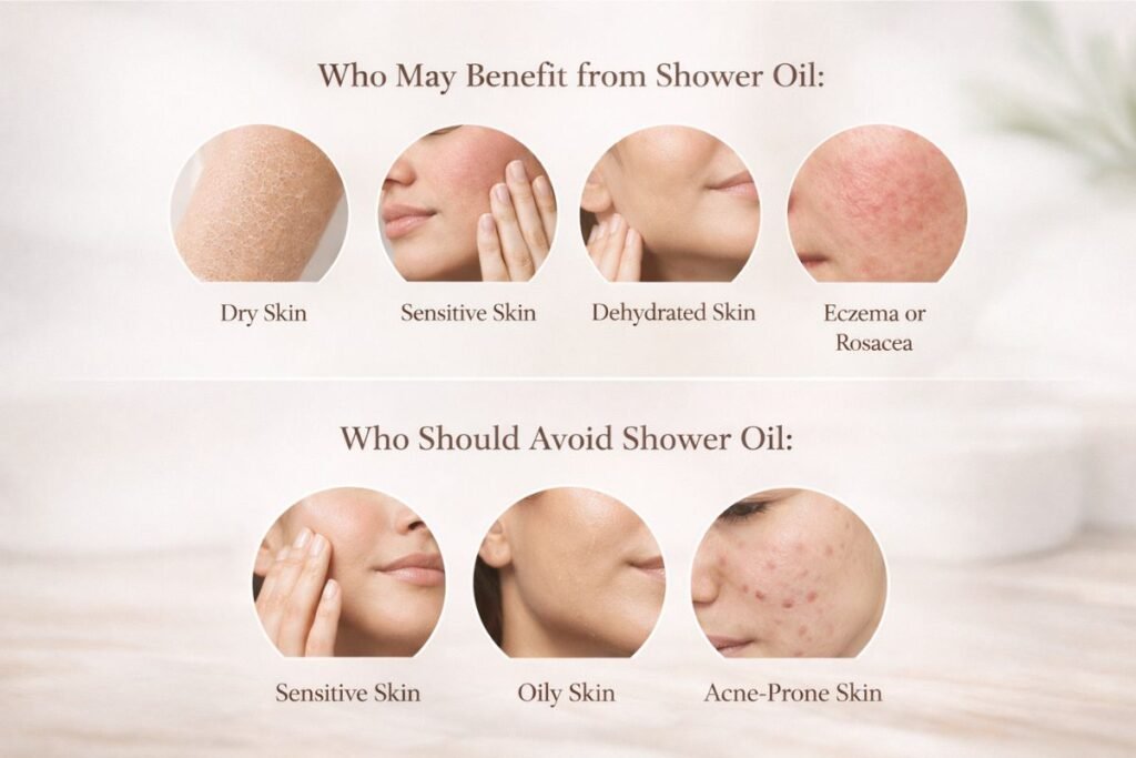If you struggle with dry skin, shower oil may be a better choice for you, as it replenishes moisture while gently cleansing. Body washes can sometimes strip your skin’s natural oils, leading to further dryness.