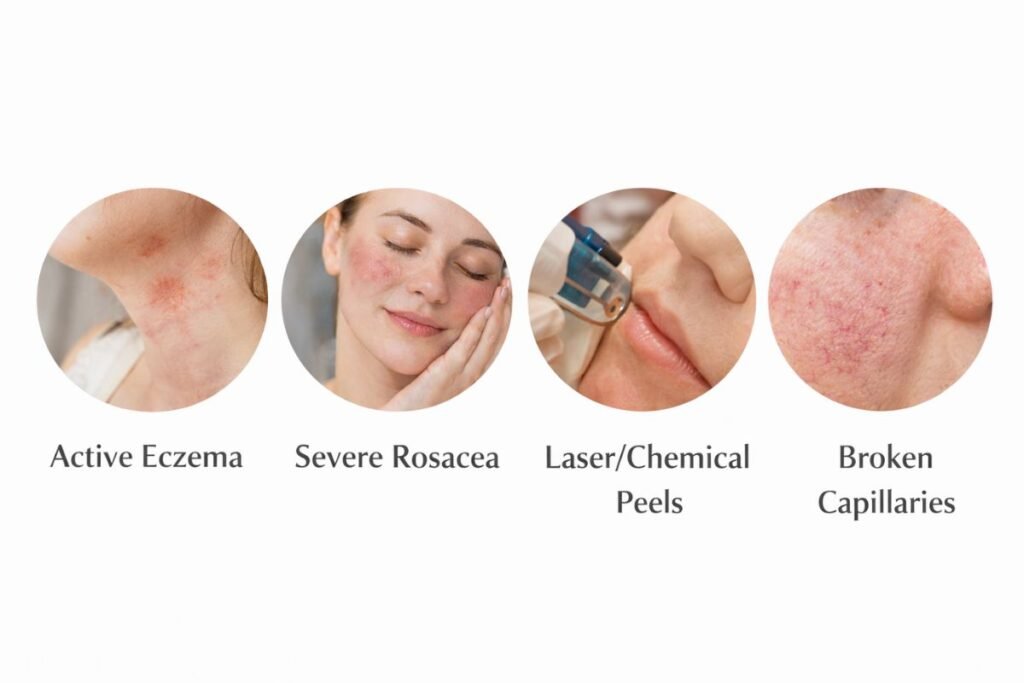 - Recent laser procedures or chemical peels